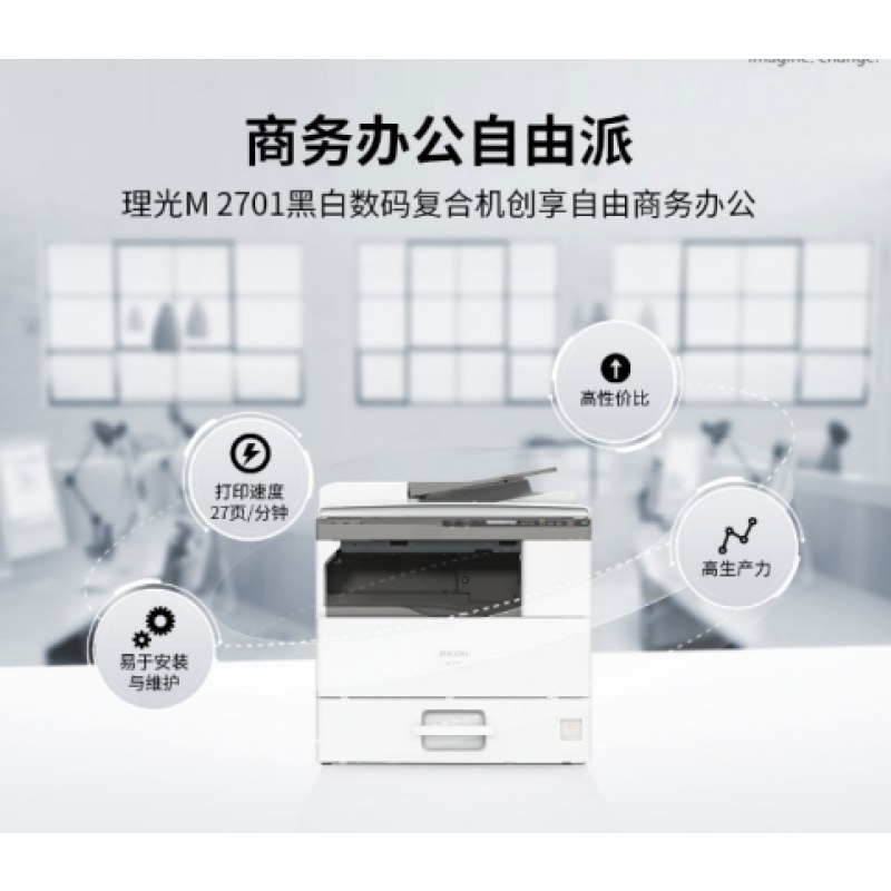 • 商品名稱:理光(Ricoh)M 2701 A3黑白數碼復合機(主機+送稿器+單紙盒)(27頁/分鐘/彩色復印 /彩色掃描/自動雙面輸稿器)