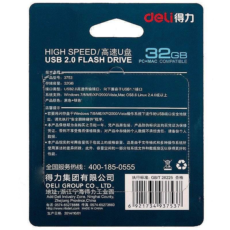 • 商品名稱:得力 3753 U盤/優盤 32G (單位:個)