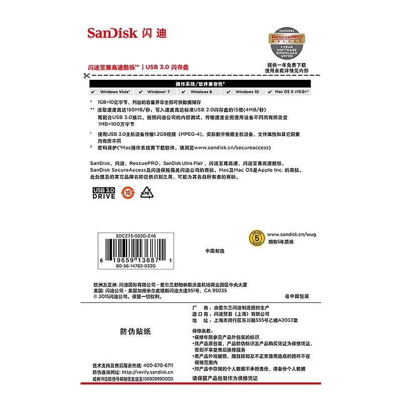 • 商品名稱:閃迪SDCZ73-128G金屬U盤USB3.0/128G(個)