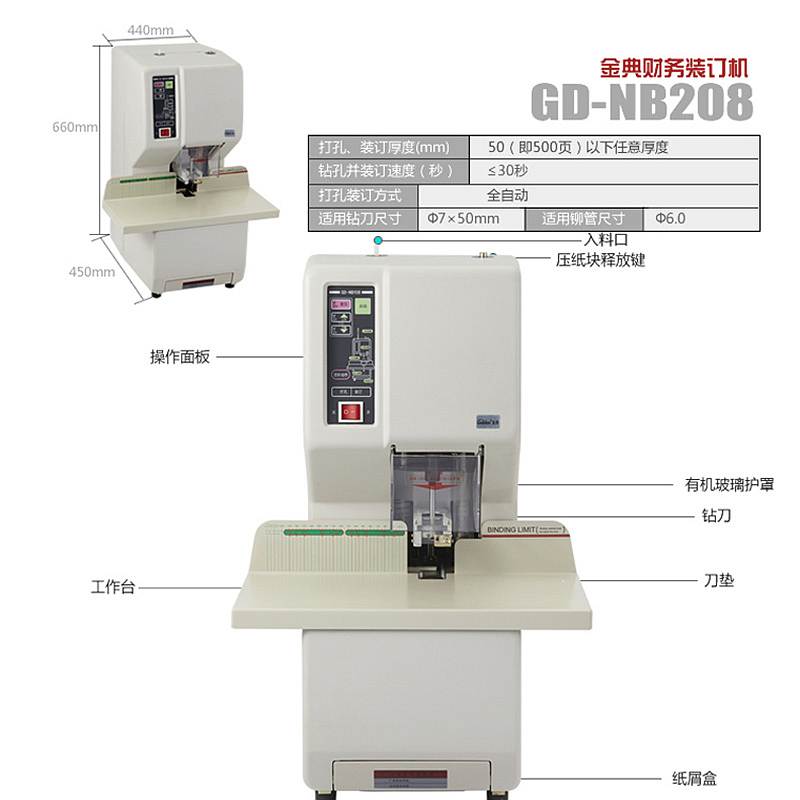 • 商品名稱:金典 GD-NB208 財務憑證裝訂機全自動打孔裝 (單位:臺)
