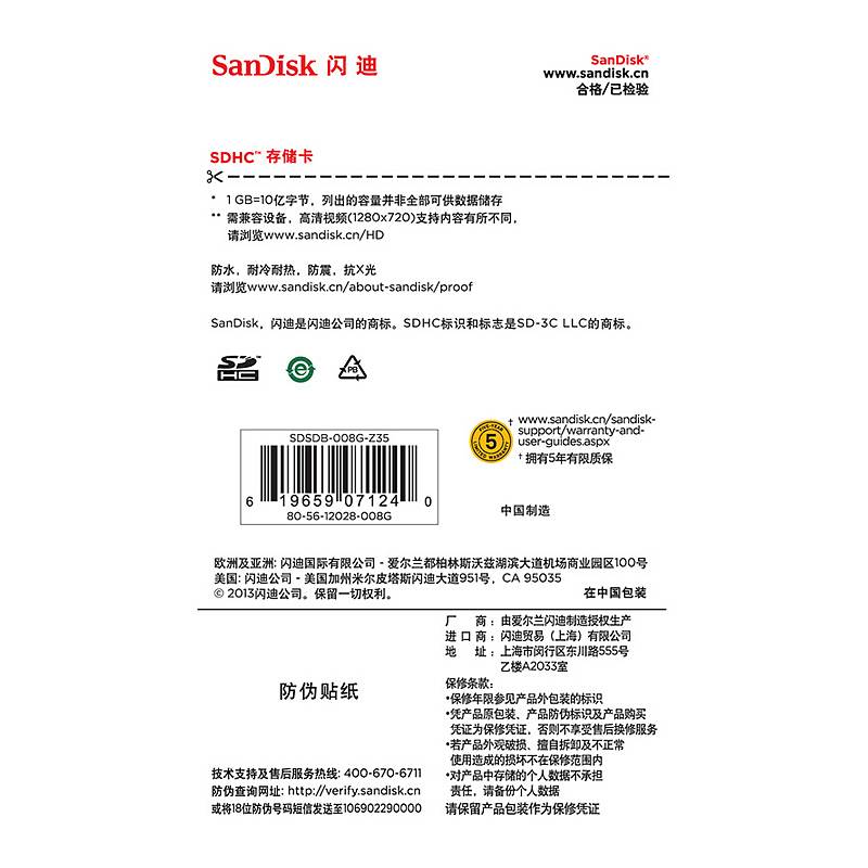 • 商品名稱:閃迪 SDSDB SD卡普速/存儲卡 8G (單位:個)