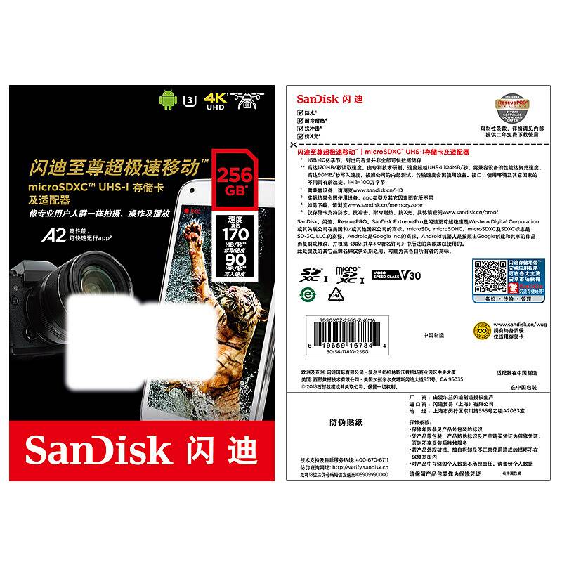 • 商品名稱:閃迪SDQQXCY-256G-ZN6MA存儲卡256G/讀取170MB/s(個)
